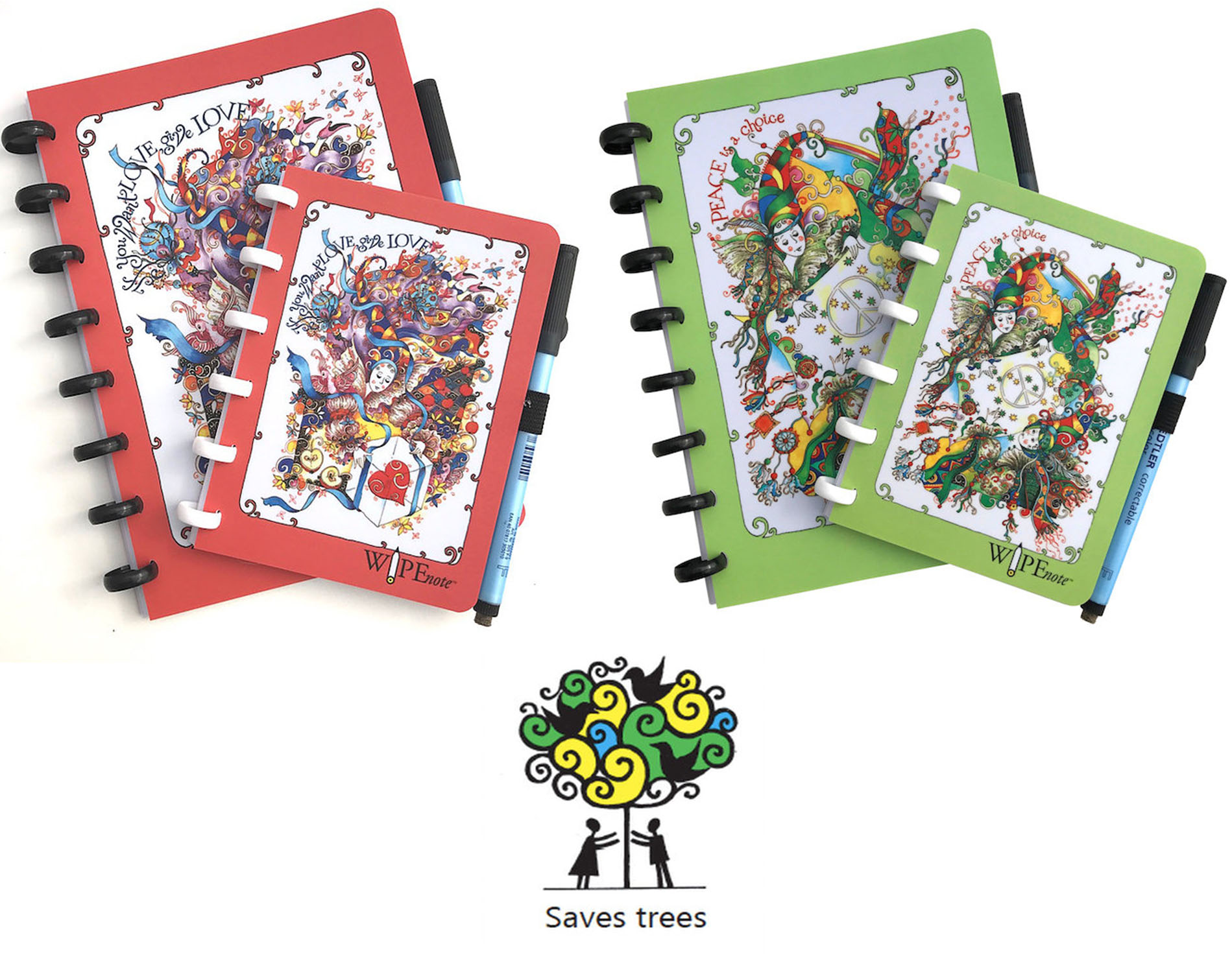 The Wipenote includes award-winning cover artwork, dry/wet erase whiteboard pages, and ink that only takes seconds to dry, just to name a few cool features!