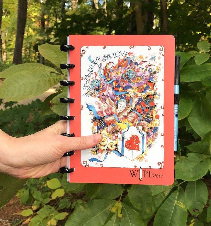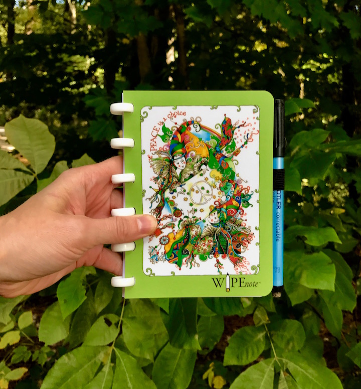 The Wipenote includes award-winning cover artwork, dry/wet erase whiteboard pages, and ink that only takes seconds to dry, just to name a few cool features!