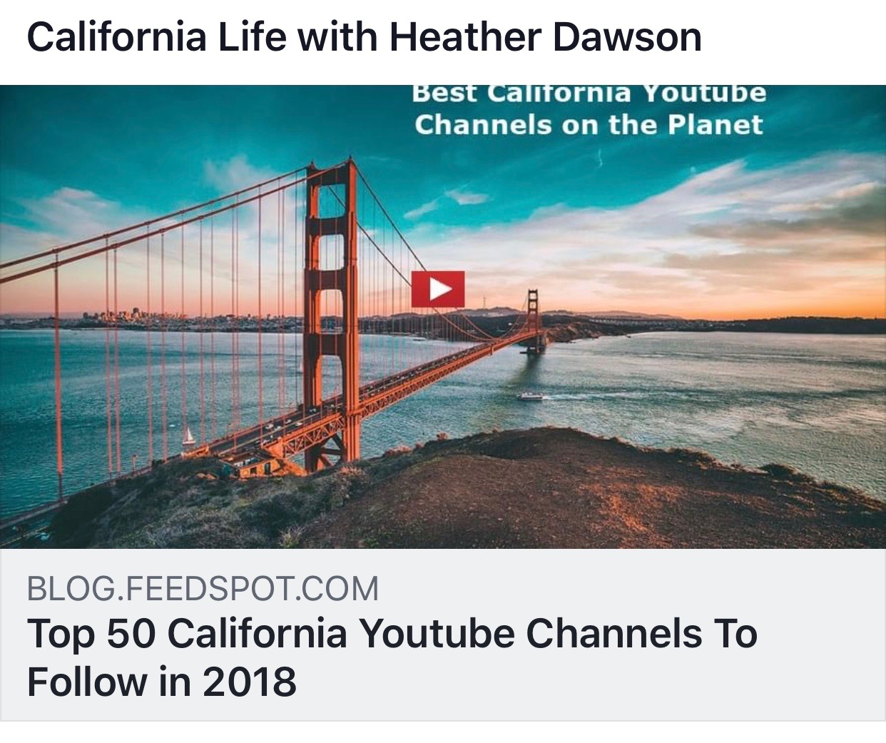 A recent announcement was made on October 22, 2018 that California Life HD has been honored on FeedSpot’s Top 50 California Youtube Channels. The list includes a variety of Blogs and Youtube channels that we are excited to be ranked alongside including Visit California, California State Parks and USC— just to name a few.