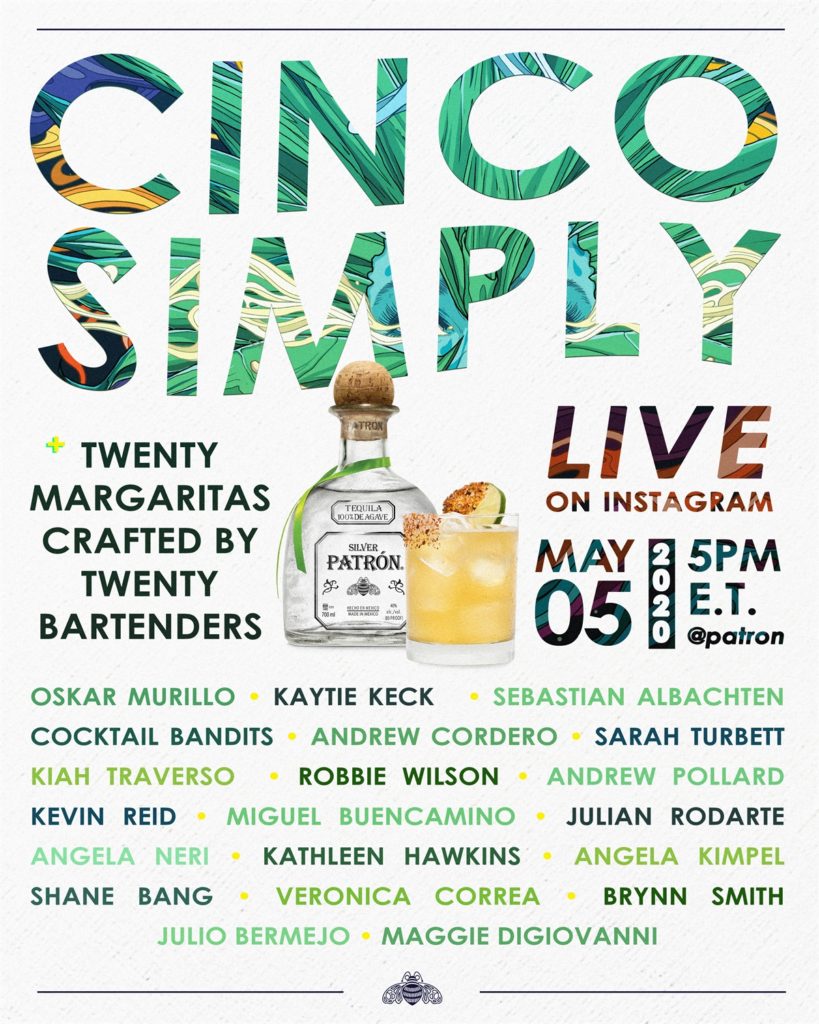 Cinco Simply: This year – you don’t need all the usual trappings of Cinco de Mayo to celebrate, you just need to keep it simple. PATRÓN tequila will be opening up the Virtual Bar bringing 20 margaritas and 20 bartenders from around the nation to your screens on Cinco de Mayo. Viewers can tune into PATRÓN’s Instagram Live (@patron) on May 5th from 5:00 – 10:00 pm ET to join 20 bartenders across the country shake up easy-to-make #PatronMargarita recipes using ingredients likely found in the kitchen, as they provide tips and tricks for the perfect at-home Cinco de Mayo experience. As part of PATRÓN tequila’s continued efforts to give back to the hospitality industry during this critical time, PATRÓN tequila will be covering each bartender’s virtual shift and viewers can leave a “virtual tip” and donate to one of PATRÓN tequila’s partner charities, The James Beard Foundation, CORE and Another Round, Another Rally, throughout the virtual experience.