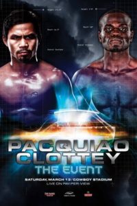 Pacquiao prevailed as the winner in “The Event” against his opponent Clottey. After the 2010 match with Mayweather fell through, Pacquiao went into semi-retirement to purse a career in politics.