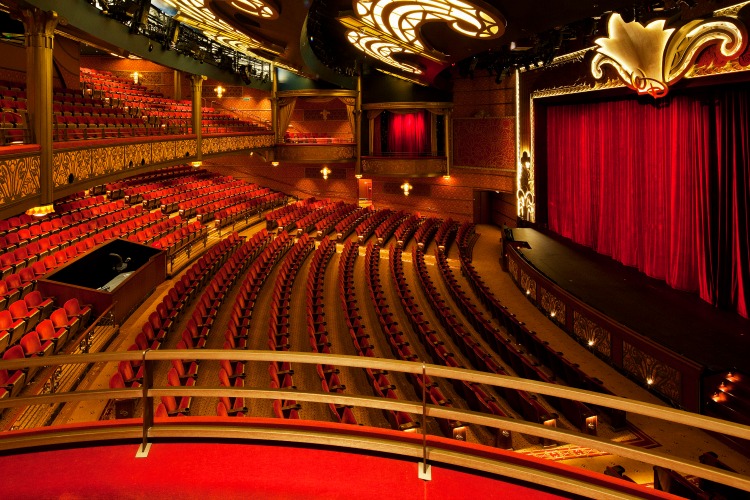 The theater spans four floors high and it equipped with rigs and a uniquely designed stage-house. The stage is also particularly equipped to handle the potentially rough seas. All the props are locked down so that no matter how rocky it gets, the scene isn’t disturbed.