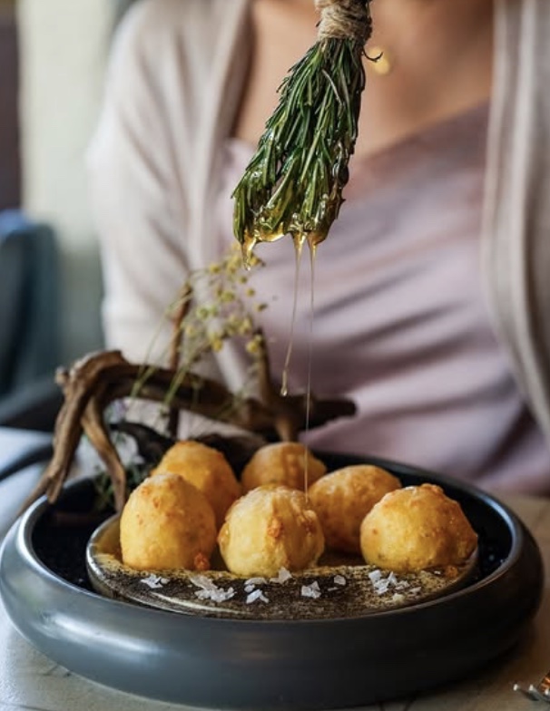 Start your experience with crave-worthy bites like Pan Frito topped with cotija cheese, serrano chile, chestnut butter, and pine thistle honey or the Jidori Chicken Croquettes, golden and comforting with aji amarillo and manchego.