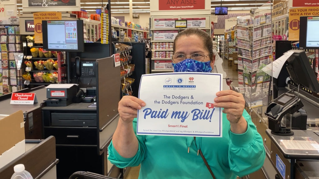 Smart & Final, the Dodgers, and the Los Angeles Dodgers Foundation today surprised customers at the chain’s Watts location by covering their grocery tabs. The surprise came during Smart & Final’s exclusive hour for vulnerable shoppers (seniors, expectant mothers, people with disabilities), health care workers and first responders at their Watts location on 9850 South Laurel Street. Smart & Final, the official grocery partner of the Dodgers, also surprised customers with gift cards to help them get through these challenging times.