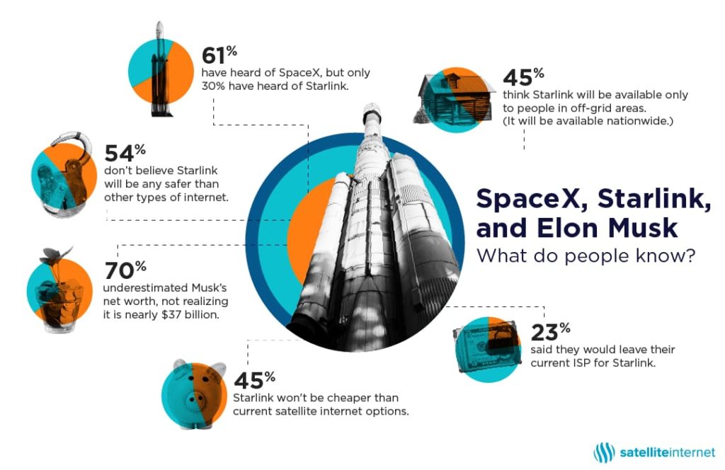 SpaceX launched a new rocket today around 4 PM ET. To find out exactly how much people know about the private aerospace company, the team at SatelliteInternet.com, surveyed hundreds of Americans asking how much they really know about SpaceX, Starlink and Elon Musk.