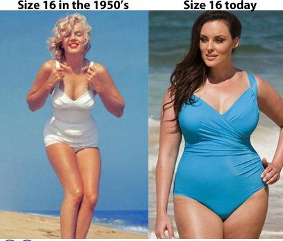When most people think about Marilyn Monroe being a size 16, many picture an image of a large woman. But the truth is, a size 16 in the 50’s is equivalent to a size 6 today.